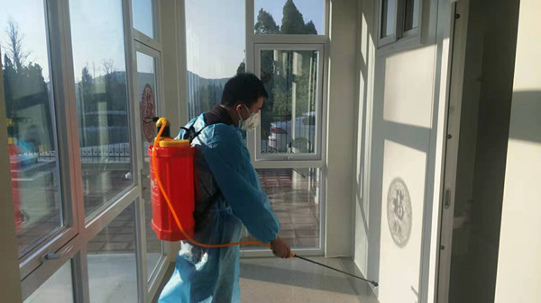(项目办公区进行消毒防疫)